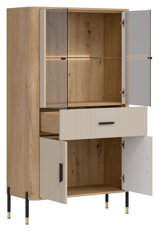 Solidny korpus w dekorze dąb Cremona Torro zestawiono z matowymi frontami w trzech modnych wariantach kolorystycznych: białym, kaszmirowym i antracytowym. Dzięki temu kolekcja daje szerokie możliwości aranżacyjne i łatwo dopasowuje się do różnych gustów oraz stylów wnętrzarskich – od nowoczesnych, przez klasyczne, aż po industrialne.