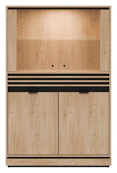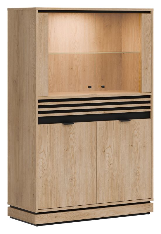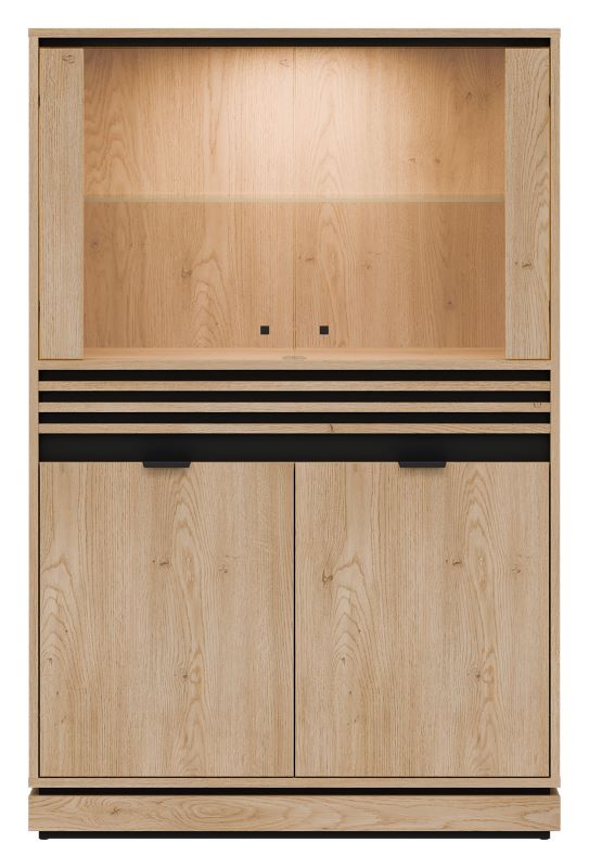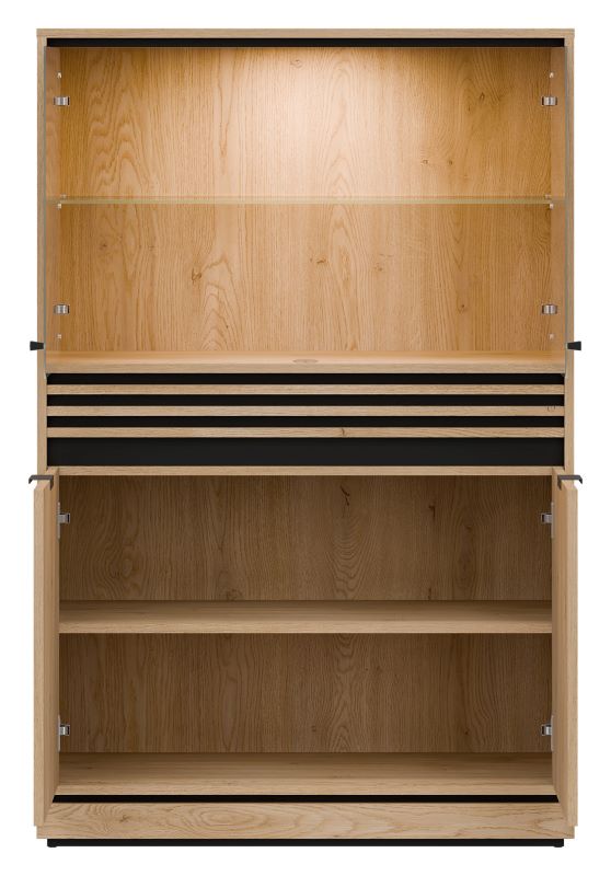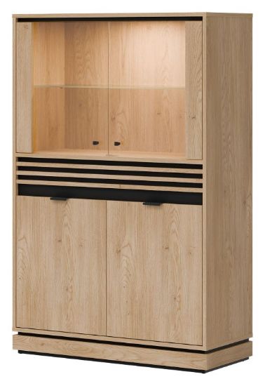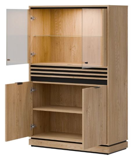 Dodatkowym atutem są zawiasy z systemem cichego domyku, które zwiększają komfort użytkowania, zapobiegając przypadkowemu trzaskaniu i wydłużając trwałość mebli. Opcjonalne podświetlenie LED dostępne w witrynach dodaje całości elegancji i pozwala wyeksponować ulubione dekoracje lub kolekcje, jednocześnie wprowadzając przytulny klimat do wnętrza.