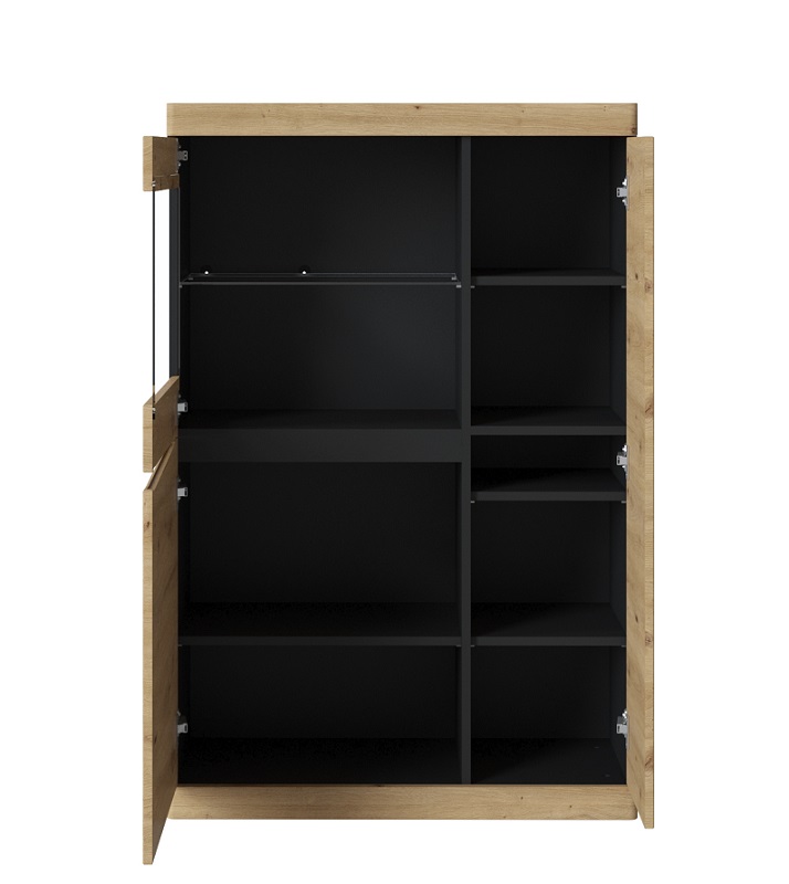 Witryna niska Turino TURV02 to połączenie funkcjonalności, estetyki i solidnego wykonania. Jej nowoczesny design i praktyczne rozwiązania sprawiają, że będzie idealnym uzupełnieniem Twojego wnętrza. Niezależnie od tego, czy potrzebujesz miejsca do przechowywania czy chcesz wyeksponować swoje kolekcje, ta witryna spełni Twoje oczekiwania.