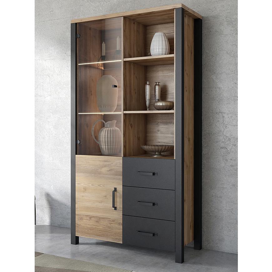 Witryna Olin to połączenie nowoczesnego designu i funkcjonalności, które sprawią, że Twoje wnętrze zyska wyjątkowy charakter. Ta elegancka witryna z kolekcji OLIN w stylu loftowym to doskonałe miejsce na przechowywanie i eksponowanie Twoich ulubionych przedmiotów.