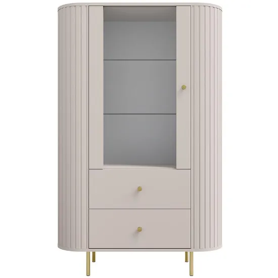 Witryna Ovalio 112 1F 2S Beż Piaskowy (Kaszmir) sprawdzi się w nowoczesnych i eleganckich wnętrzach, oferując praktyczne rozwiązania do przechowywania, subtelne ciepło dekoru beż piaskowy oraz nowoczesne, harmonijne wykończenie. To mebel, który łączy design i funkcjonalność w jednym, zapewniając wygodę użytkowania na co dzień.
