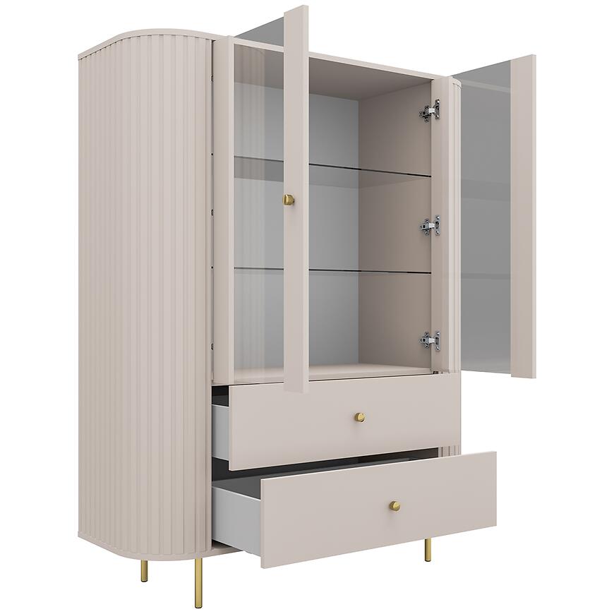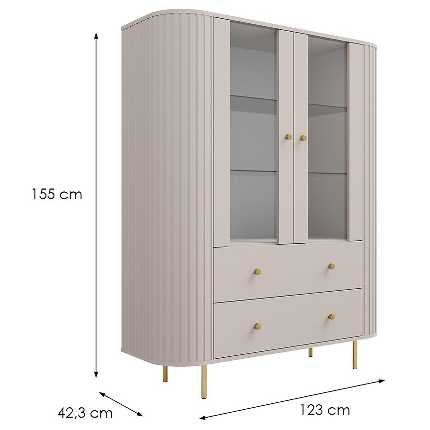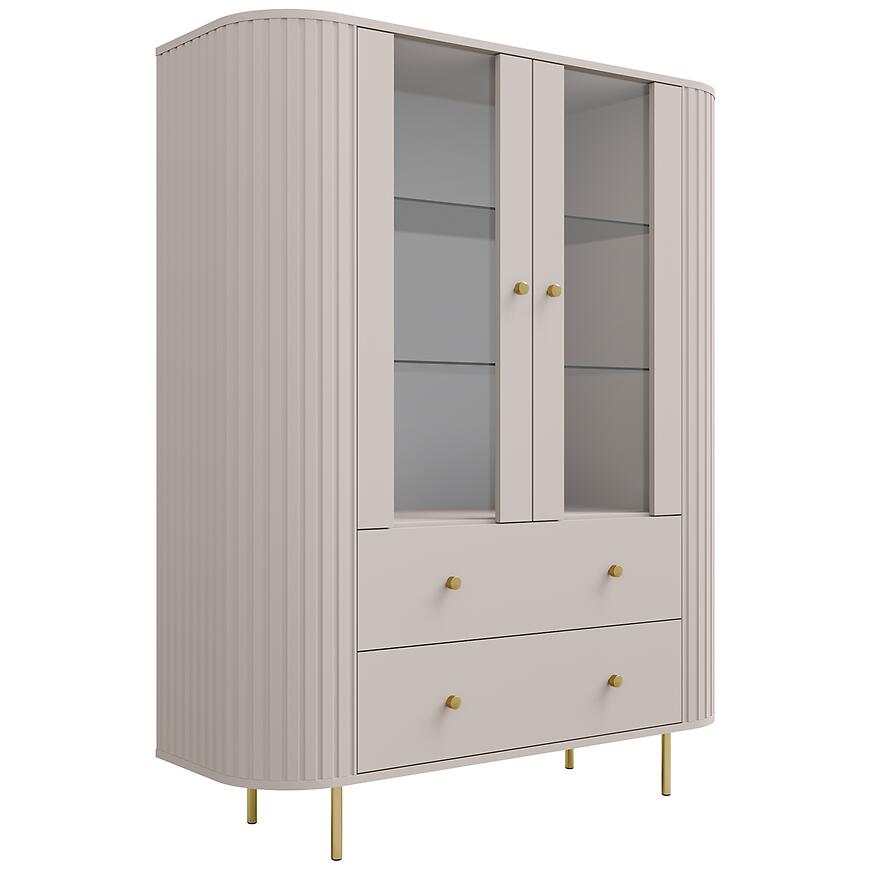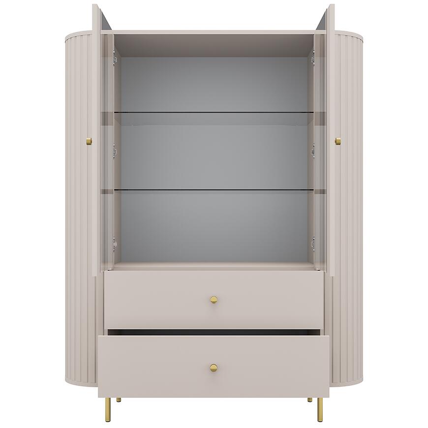 Witryna Ovalio 122 2F 2S beż piaskowy (kaszmir) sprawdzi się w nowoczesnych i eleganckich wnętrzach, oferując praktyczne rozwiązania do przechowywania oraz subtelne, harmonijne wykończenie w kolorze beż piaskowy (kaszmir). To mebel łączący funkcjonalność, trwałość i estetykę w jednym, idealny do codziennego użytku.