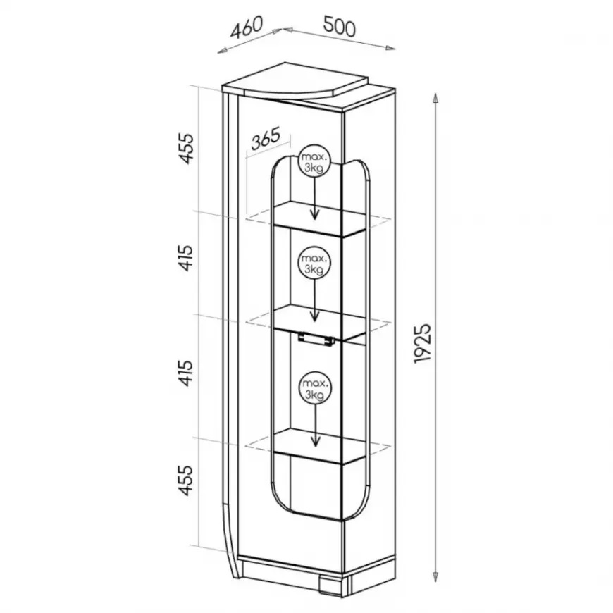 Witryna Romero R-02L to mebel pochodzący z wyjątkowej kolekcji, charakteryzującej się niebanalnym designem. Niesztampowa bryła regału może być doskonałym elementem wystroju salonu, pokoju dziennego lub urządzonego w nowoczesnym stylu biura. Mebel posiada przejrzyste drzwiczki frontowe i półki wykonane z hartowanego szkła. Wnętrze witryny Romero R-02L zostało pokryte okleiną w kolorze ciemnego dębu, kontrastującą z jasną, imitującą naturalne drewniane słoje okleiną części frontalnej. Na kompozycję bryły składają się również metalowe akcenty łączeń w matowym kolorze aluminium. Szerokość witryny 50 cm przy głębokości 46 cm i wysokości 192,5 sprawia, że mebel posiada dużą pojemność, nie przytłaczając przy tym nadmiernie przestrzeni pomieszczenia. Mebel nadaje się idealnie do prezentacji przedmiotów umieszczonych na półce. Wyjątkowych walorów wizualnych może dostarczyć montaż małych punktowych świateł LED-owych, dostępnych za dodatkową opłatą.