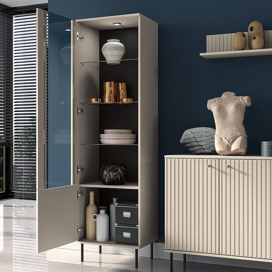 Witryna Sophie 02 Cashmere to elegancki i nowoczesny mebel, który wspaniale uzupełni każde współczesne wnętrze. Stworzona z myślą o tych, którzy cenią sobie funkcjonalność połączoną z estetyką, witryna ta oferuje dużo miejsca do przechowywania i ekspozycji swoich ulubionych przedmiotów.