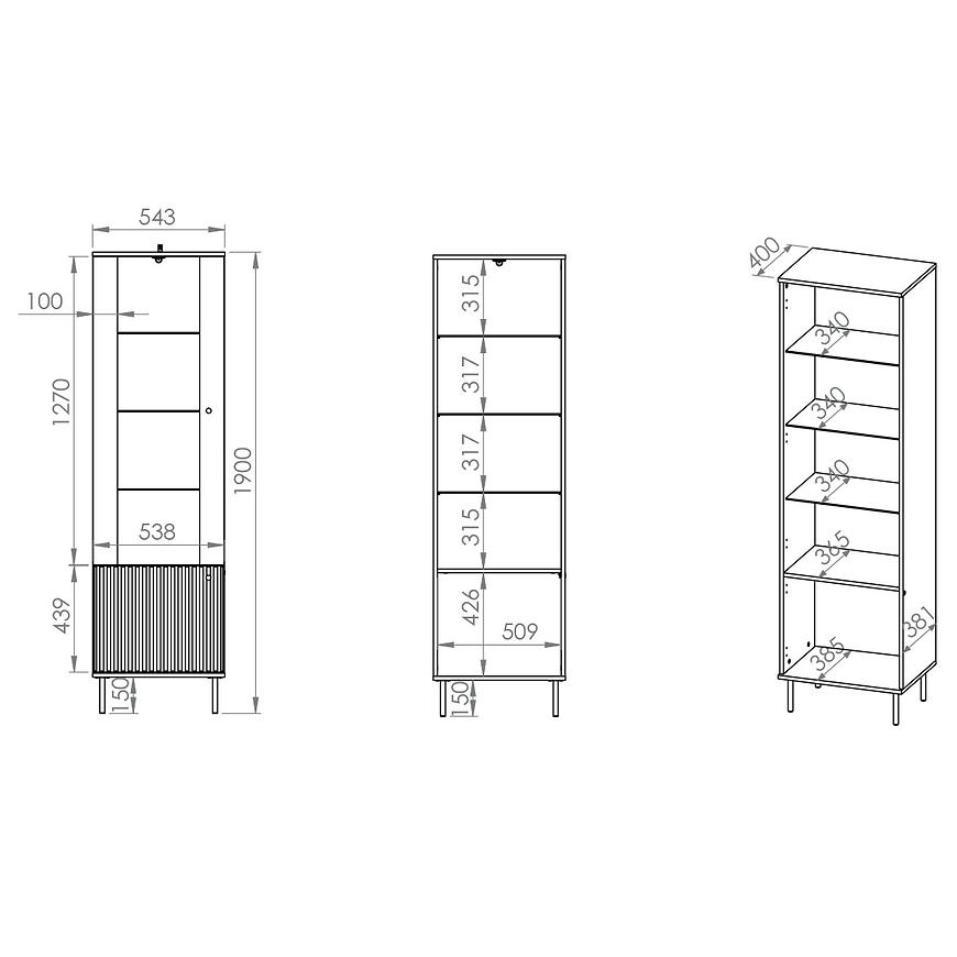Praktyczność: Witryna wyposażona jest w trzy przestronne półki, które pozwalają na wygodne przechowywanie i eksponowanie książek, dekoracji czy innych cennych przedmiotów. Dwudrzwiowa konstrukcja umożliwia łatwy dostęp do wnętrza, a brak szuflad utrzymuje minimalistyczny wygląd mebla.