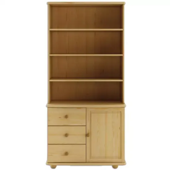 Witryna Sosnowa KW to wyjątkowy element wyposażenia, który łączy w sobie naturalny urok drewna z klasycznym, ponadczasowym stylem. Wykonana w całości z surowego drewna sosnowego, prezentuje jasne, drewnopodobne wybarwienie, które doskonale komponuje się z matowym wykończeniem zarówno frontów, jak i korpusu. Taki wygląd sprawia, że witryna wnosi do wnętrza ciepło oraz elegancję, idealnie wpisując się w tradycyjne aranżacje, a także dodając naturalnego charakteru w bardziej nowoczesnych przestrzeniach.
