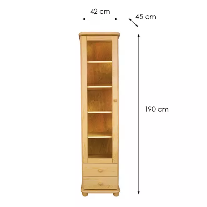 Konstrukcja frontów i korpusu z litego drewna podkreśla solidność i trwałość mebla, co zapewnia jego długowieczność. Witryna KW oferuje nie tylko estetyczny design, ale także funkcjonalność, umożliwiając wyeksponowanie najcenniejszych przedmiotów, takich jak książki, porcelana czy dekoracje. Przeszklone drzwi frontowe w klasycznym stylu pozwalają na stworzenie eleganckiej ekspozycji, jednocześnie chroniąc przedmioty przed kurzem.