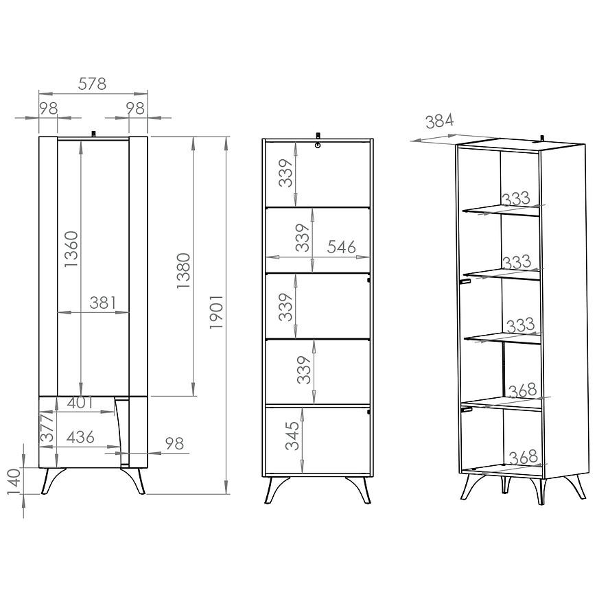 • witryna jednodrzwiowa lewa i prawa – nowoczesne bryły z możliwością zamontowania oświetlenia LED,