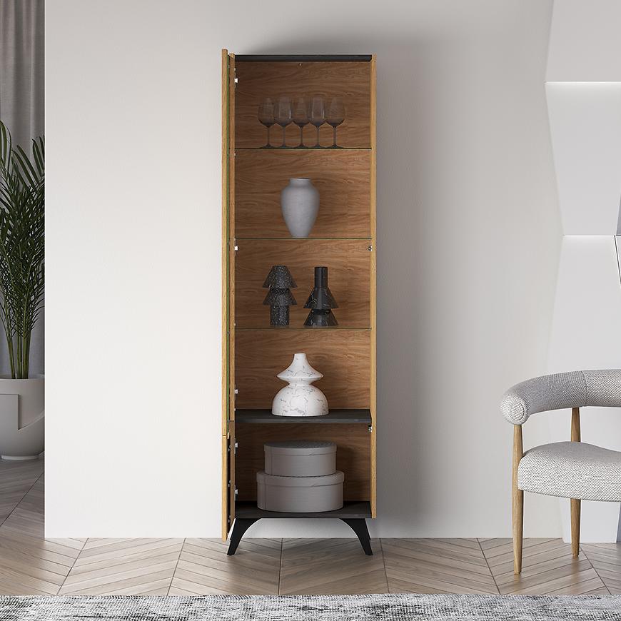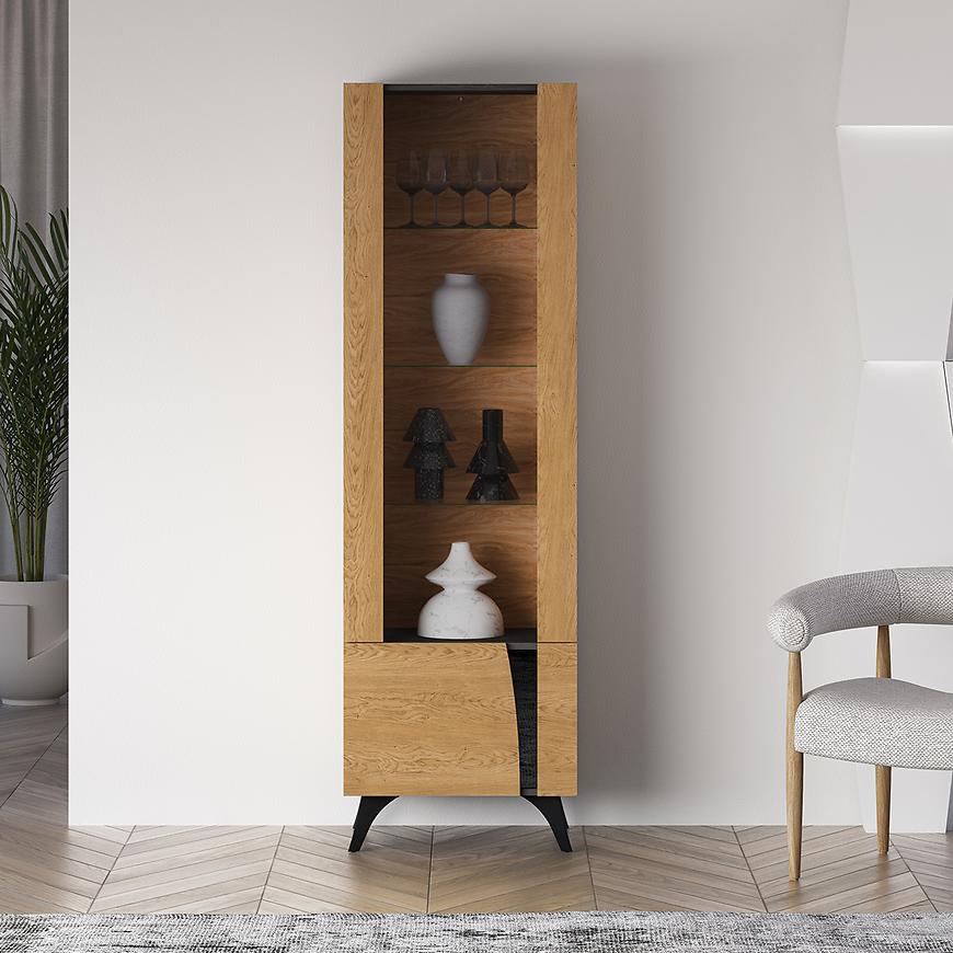 Witryna Toscania 02l Milton Dąb Dune/Jesion Czarny/Szkł