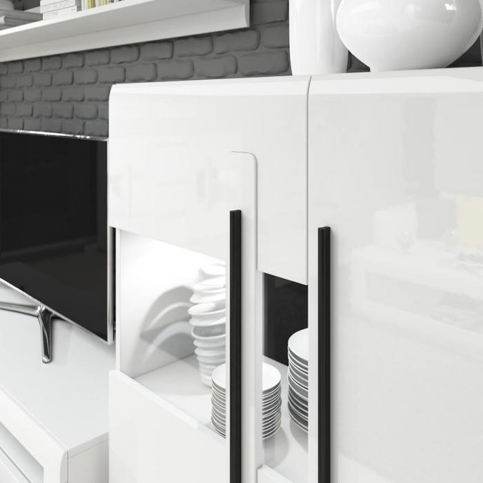 Kolekcja mebli do pokoju dziennego Tulsa to połączenie nowoczesnego designu i elegancji. Wykonane z najwyższej jakości płyty wiórowej laminowanej, meble dostępne są w białym kolorze z wyraźnymi elementami w czarnym odcieniu. Ich błyszczące wykończenie nadaje im luksusowego charakteru, który doskonale wpisuje się w nowoczesne aranżacje wnętrz.