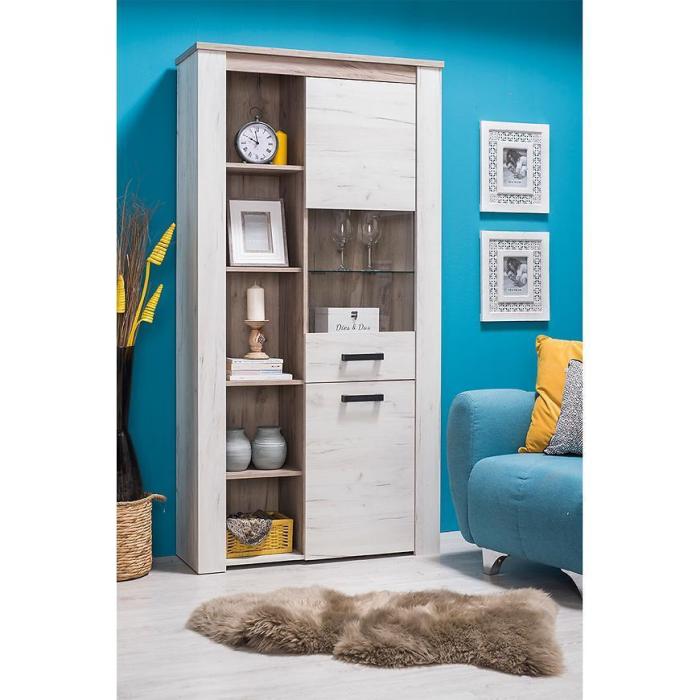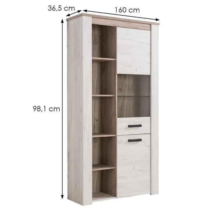 Witryna to praktyczny i funkcjonalny mebel. Korpus oraz front wykonany jest z płyty wiórowej laminowanej. Mebel będzie doskonałym dodatkiem do każdego wnętrza ze względu na swoją uniwersalną kolorystykę.