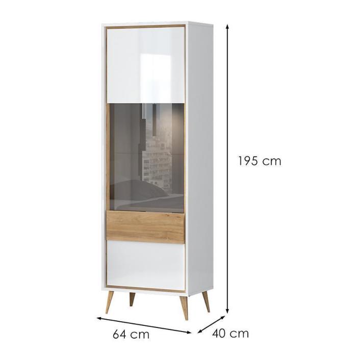 Witryna to praktyczny i funkcjonalny mebel. Korpus oraz front wykonany jest z płyty MDF lakierowanej. Mebel będzie doskonałym dodatkiem do każdego wnętrza ze względu na swoją uniwersalną kolorystykę.