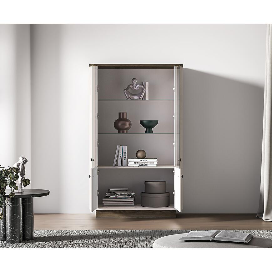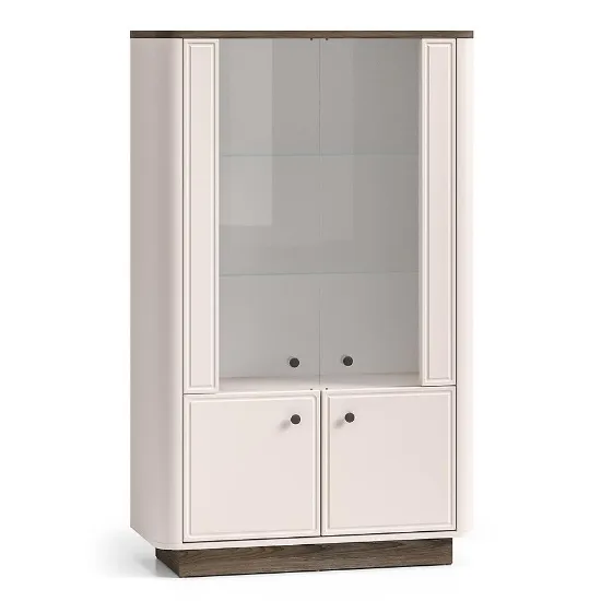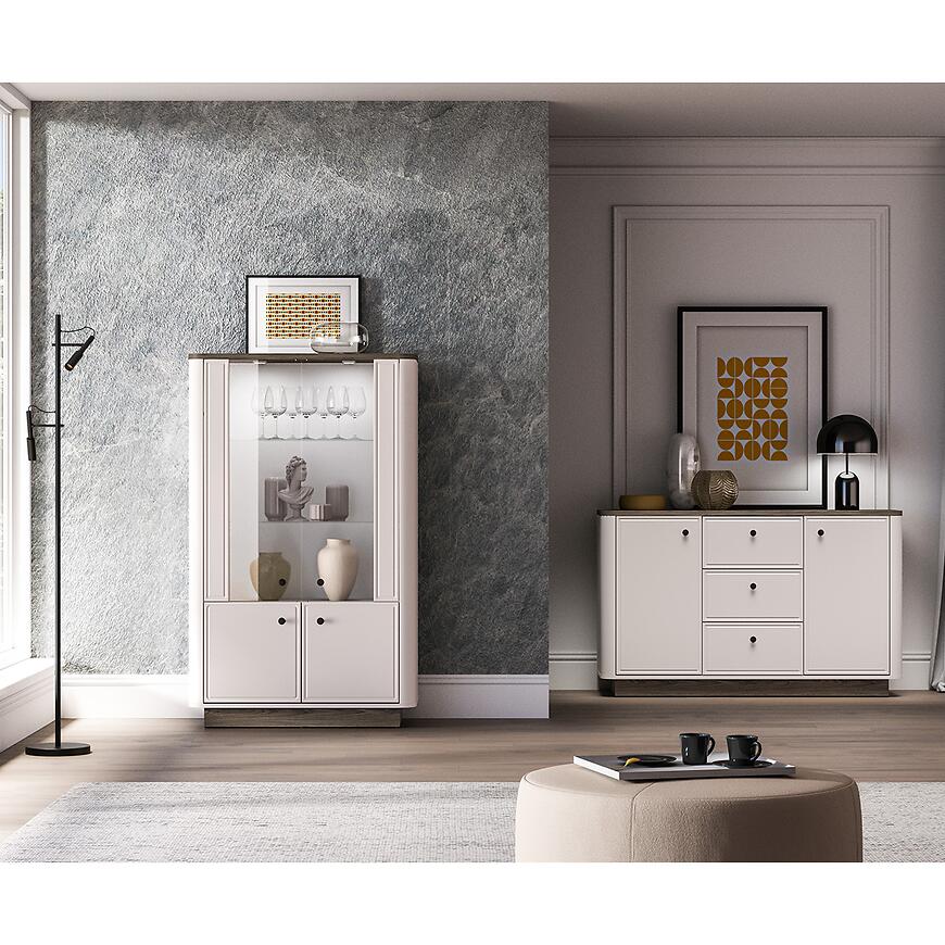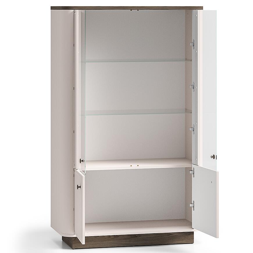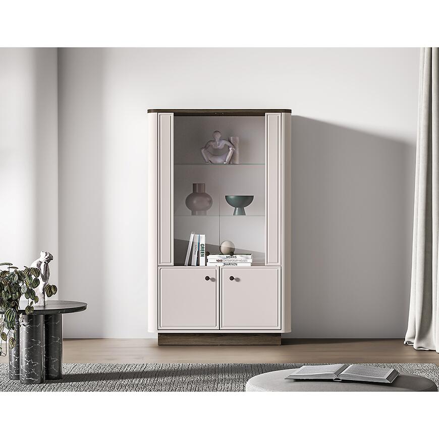 Witryna Vilavio 02 to praktyczny wybór do salonu, który łączy elegancką ekspozycję z funkcjonalnym przechowywaniem i spójnym designem całej kolekcji Vilavio.
