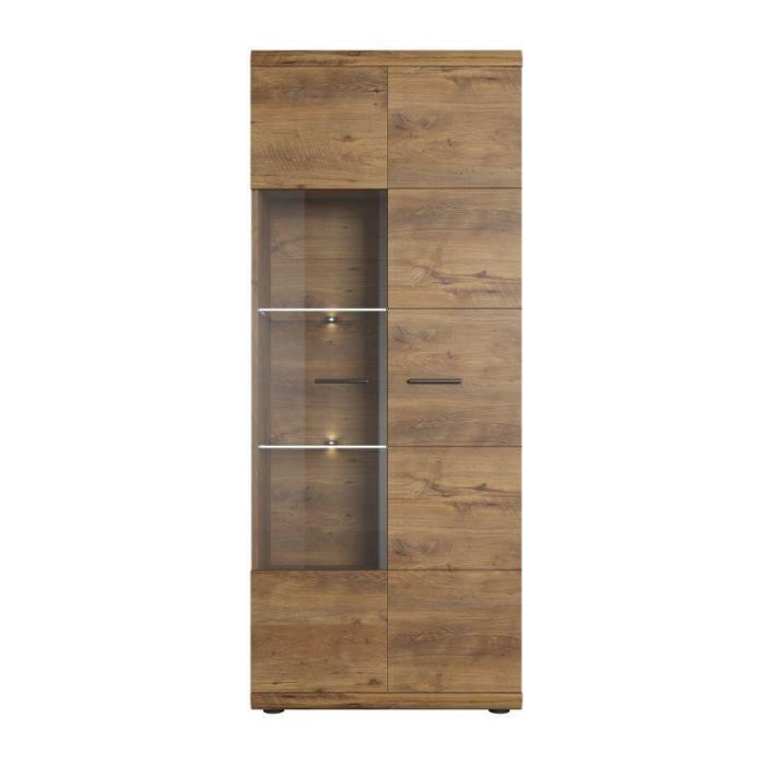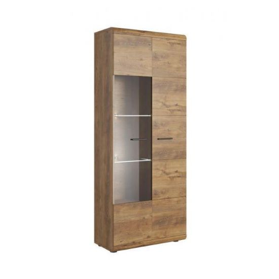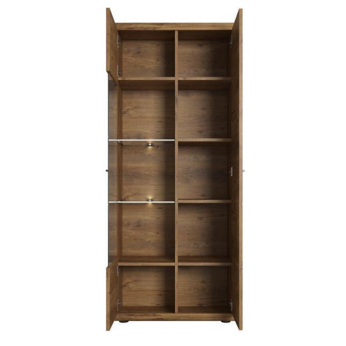 Drzwi witryny są z przeszkleniem, za którymi znajdują się dodatkowe półki do przechowywania