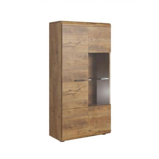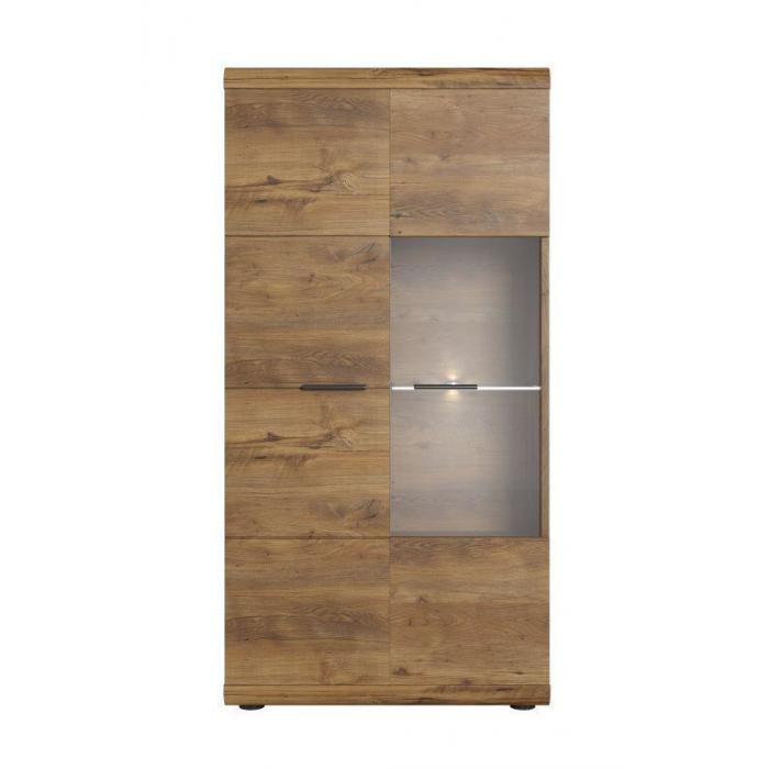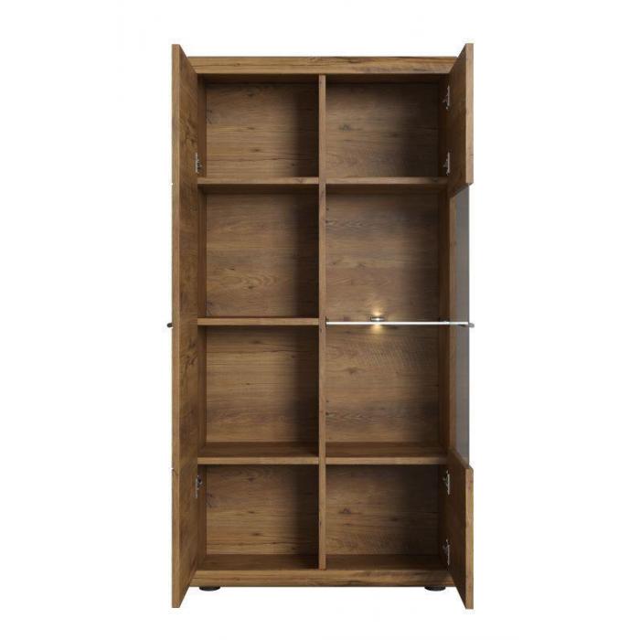 Drzwi witryny są z przeszkleniem, za którymi znajdują się dodatkowe półki do przechowywania