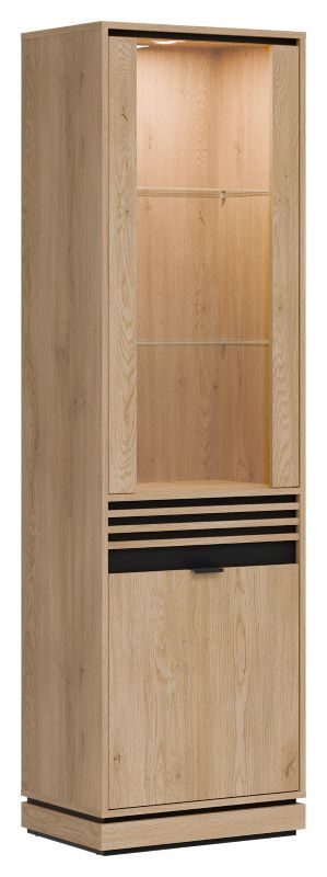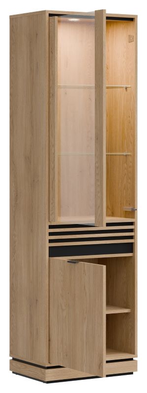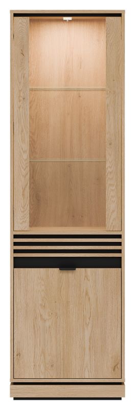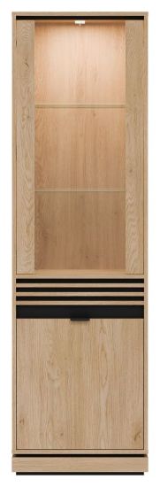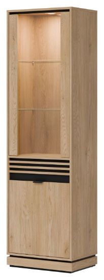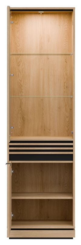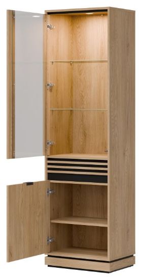 Dodatkowym atutem są zawiasy z systemem cichego domyku, które zwiększają komfort użytkowania, zapobiegając przypadkowemu trzaskaniu i wydłużając trwałość mebli. Opcjonalne podświetlenie LED dostępne w witrynach dodaje całości elegancji i pozwala wyeksponować ulubione dekoracje lub kolekcje, jednocześnie wprowadzając przytulny klimat do wnętrza.