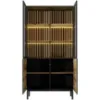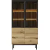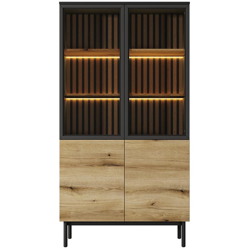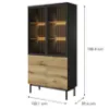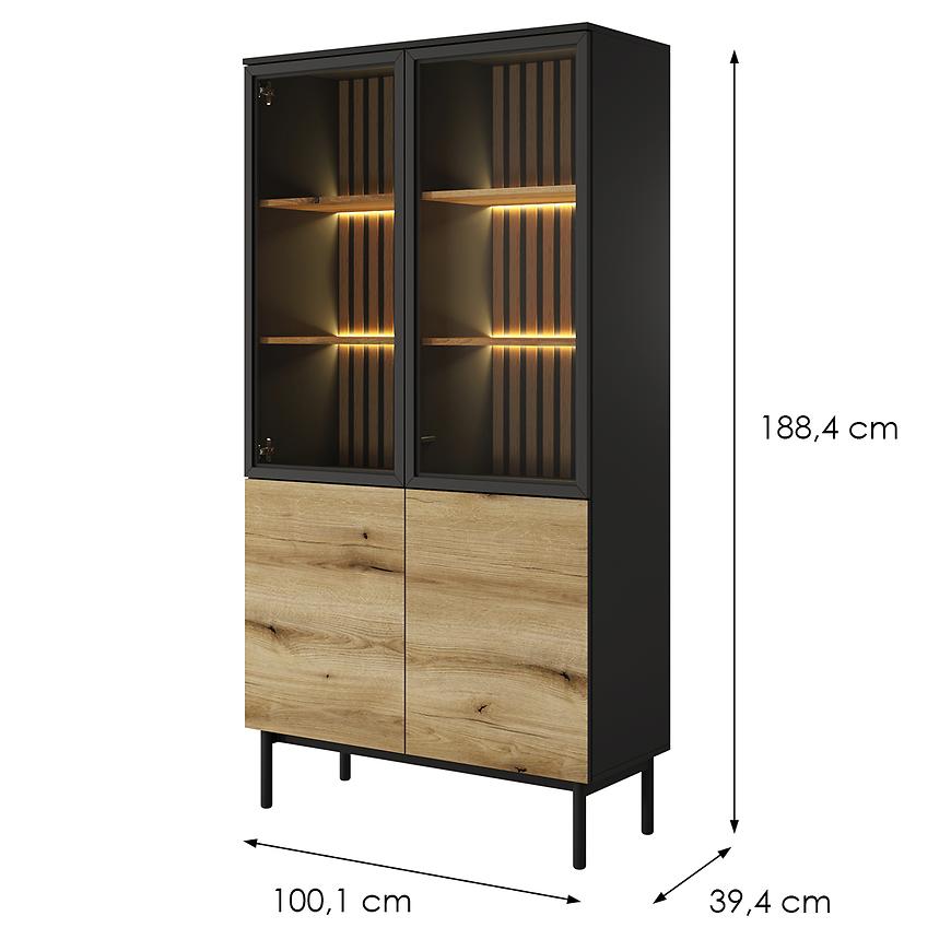 Witryna Lang A+LED w wybarwieniu czarny/dąb Evoke to nowoczesny i elegancki mebel do salonu lub jadalni, który łączy estetykę drewna z praktycznym oświetleniem LED. Jej wymiary 100,1×39,4×188,4 cm sprawiają, że jest wysoka i pojemna, a jednocześnie nie zajmuje nadmiernej przestrzeni w pomieszczeniu. Dwudrzwiowy front w kolorze dąb Evoke z elementami czerni i matowe wykończenie nadają witrynie stylowy i wyrafinowany wygląd, który dopasuje się do nowoczesnych aranżacji wnętrz.