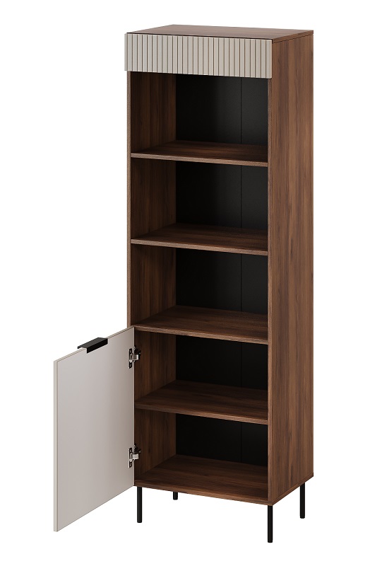 Witryna wysoka Almera typ 3 to doskonałe rozwiązanie dla osób, które poszukują funkcjonalnego mebla o estetycznym designie. Jednodrzwiowa konstrukcja z trzema przestronnymi półkami zapewnia optymalną organizację przechowywanych przedmiotów. Drzwi uchylne ułatwiają dostęp do zawartości, co sprawia, że witryna jest nie tylko elegancka, ale również bardzo praktyczna.