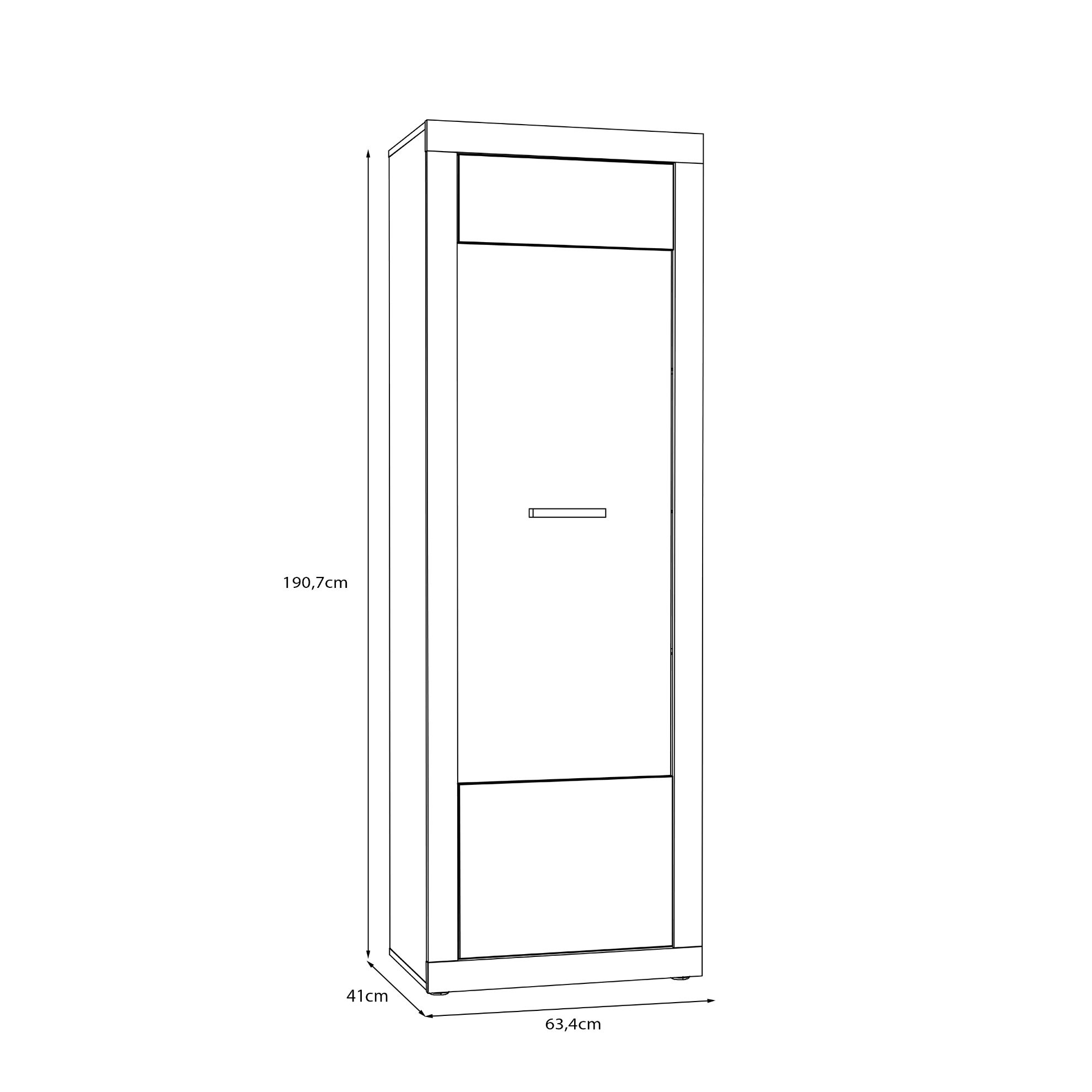 Wymiary: szerokość 63,3 cm, głębokość 41 cm, wysokość 190,7 cm