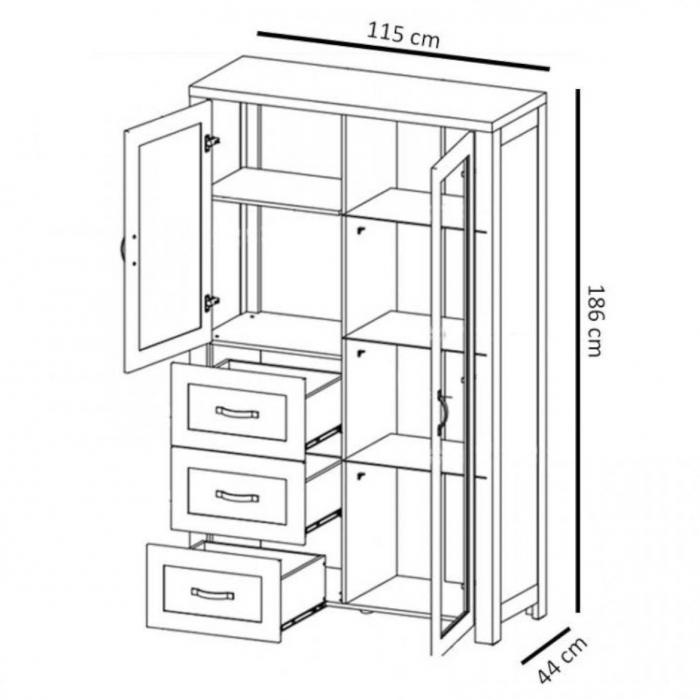 Komoda dwudrzwiowa z trzema szufladami to rozwiązanie na przechowywanie różnych drobiazgów, dzięki czemu utrzymasz ład i harmonię w swoim salonie. Witryny jednodrzwiowe, dwudrzwiowe i czterodrzwiowe z szufladami i przeszklonymi drzwiami to idealne miejsce do wyeksponowania dekoracyjnych elementów i kolekcji, dodając wnętrzu osobistego charakteru. Szafa dwudrzwiowa zapewni Ci wystarczającą przestrzeń na odzież i akcesoria, zachowując równocześnie elegancję i porządek w Twoim pomieszczeniu.