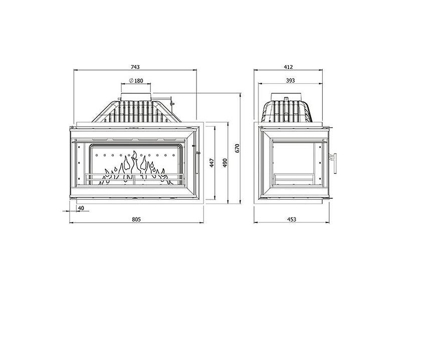 Bezpieczeństwo i trwałość to priorytety przy projektowaniu tego wkładu. Dlatego znajdziemy w nim dodatkową płytę żarową, która skutecznie chroni tył kominka przed przepaleniem. Aby zapewnić dodatkową ochronę, wkład został wyposażony w ozdobny płotek, który zabezpiecza drewno przed wypadaniem i dodaje estetycznego wykończenia.