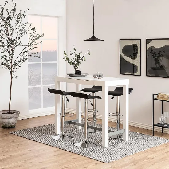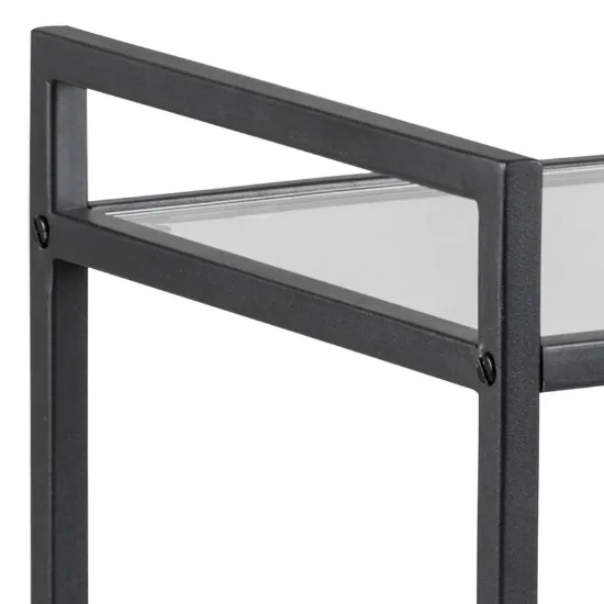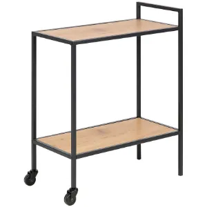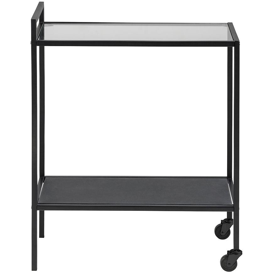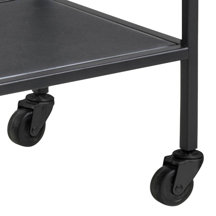 Dzięki solidnemu metalowemu stelażowi wózek jest trwały i stabilny, a jego kompaktowe wymiary (75 cm wysokości, 30 cm szerokości, 60 cm długości) sprawiają, że z łatwością zmieści się nawet w mniejszych pomieszczeniach. Prostokątny kształt blatów zapewnia optymalną powierzchnię do serwowania napojów, przekąsek czy eleganckich dekoracji.