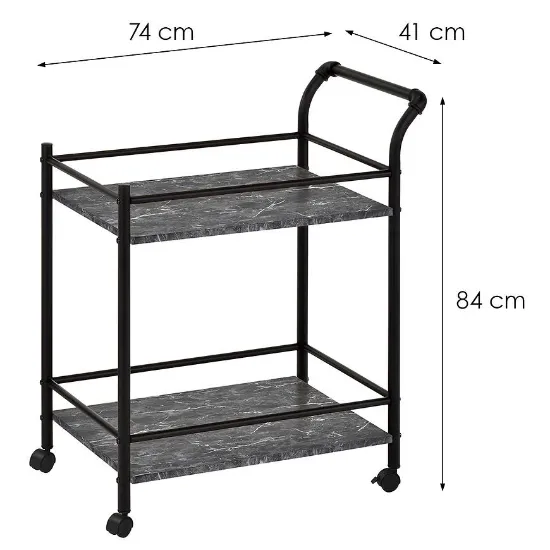Wózek kuchenny Gc5334-1 to praktyczne i stylowe rozwiązanie, które doskonale sprawdzi się w nowoczesnych wnętrzach. Dzięki eleganckiemu połączeniu czarnego marmuru z metalowym stelażem, wózek nie tylko ułatwia organizację przestrzeni, ale także stanowi stylowy element dekoracyjny.