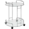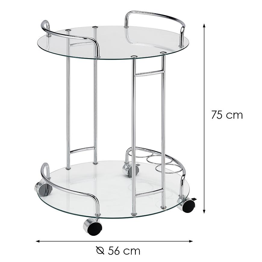 - Kształt blatu: Okrągła forma nadaje wózkowi nowoczesny wygląd, a jednocześnie ułatwia ustawienie w każdej przestrzeni.
