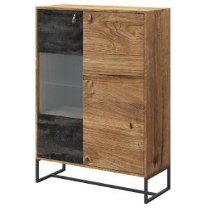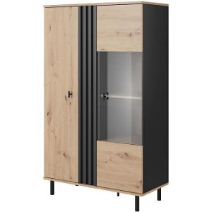 Witryna wysoka Lang A+LED czarny/dąb Evoke