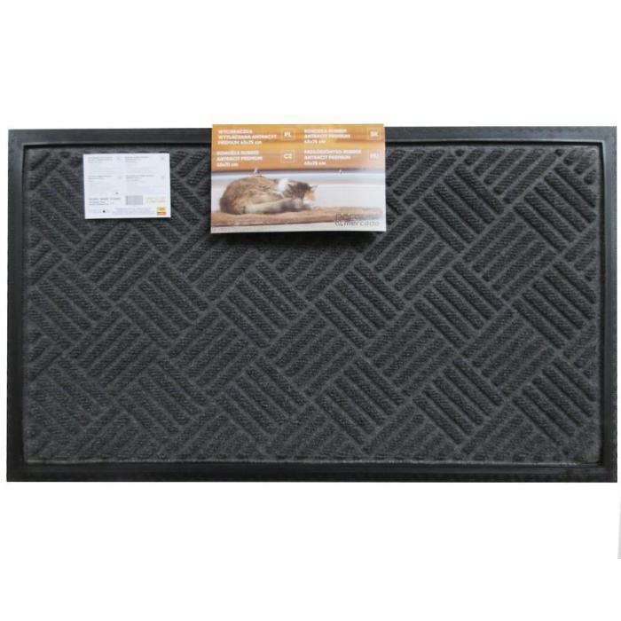 Wytłaczana wycieraczka na gumowym podłożu posiadająca właściwości antypoślizgowe. Łatwa w utrzymaniu czystości, gruba, solidna o nowoczesnym wzorze.