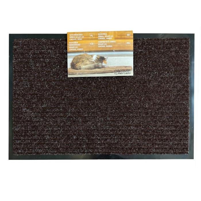 Dywanowa wycieraczka na gumowym podłożu posiadająca właściwości antypoślizgowe. Łatwa w utrzymaniu czystości, gruba, solidna o nowoczesnym wzorze.