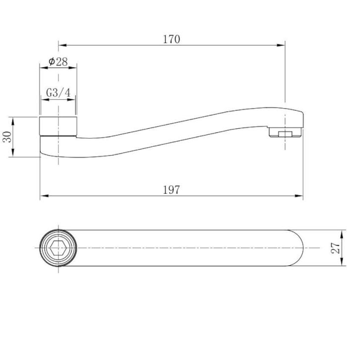 Inspiracje Wlewka do baterii ściennych, wykonana z mosiądzu w kolorze chromu o długości 15 cm.