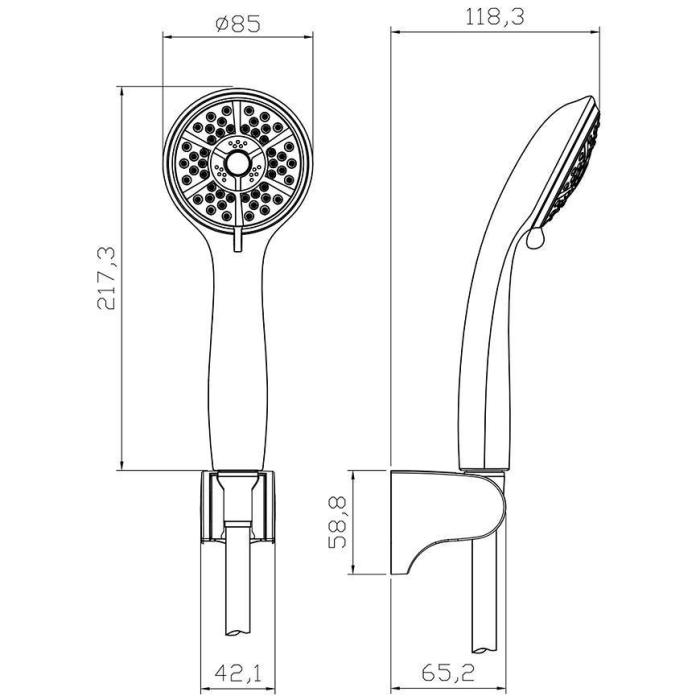Zestaw jest niezwykle praktyczny i z pewnością ułatwi użytkowanie. Całość została wykonana z tworzywa sztucznego. Długość węża natryskowego ma 150 cm.