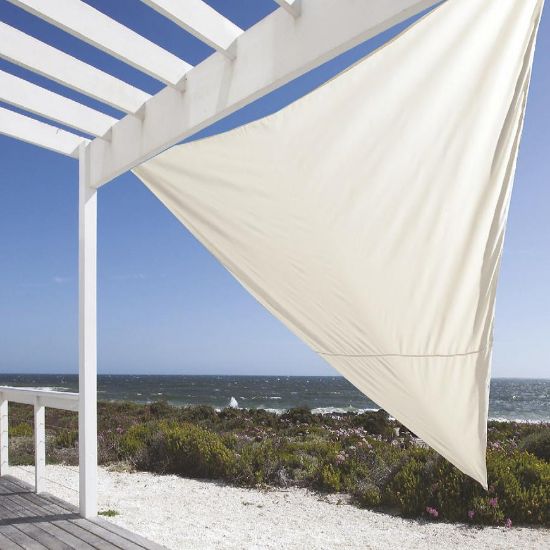 Żagiel przeciwsłoneczny o wymiarach 5x5x5 metrów w eleganckim, beżowym kolorze to stylowe i funkcjonalne rozwiązanie do ochrony przed słońcem dla Twojego ogrodu, tarasu czy patio. Jego trójkątny kształt umożliwia elastyczne i estetyczne dopasowanie do różnorodnych przestrzeni zewnętrznych, zapewniając efektywne zacienienie i ochronę przed promieniami UV.