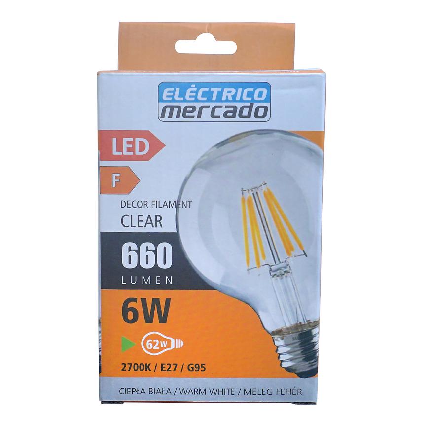 Żarówka LED FL G95 o mocy 6W emituje ciepłe światło o temperaturze barwowej 2700K i strumieniu świetlnym 660 lm. Posiada gwint E27 oraz owalny kształt G95, idealny do dekoracyjnego oświetlenia wnętrz. Produkt cechuje się wysoką efektywnością energetyczną (klasa E) i długą żywotnością, zapewniając komfortowe, przyjemne światło w przestrzeniach mieszkalnych i komercyjnych.