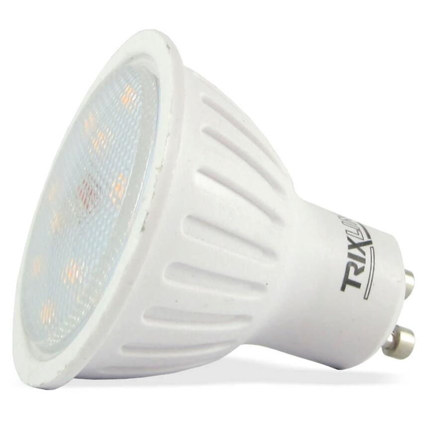 Żarówka LED BC TR GU10 7W 2700K to wydajne źródło światła o ciepłej barwie 2700K, zapewniające przytulną atmosferę w pomieszczeniu. Jej moc wynosi 7W, a strumień świetlny 600 lm. Posiada standardowy gwint GU10 i kąt świecenia 120°, nie oferuje funkcji przyciemniania ani zmiany kierunku światła. Klasa efektywności energetycznej: F, żywotność około 30 000 godzin, wskaźnik oddawania barw >80 gwarantuje naturalne odwzorowanie kolorów. Wymiary żarówki: 5,5 × 5 cm. Idealna do punktowego oświetlenia w kuchniach, łazienkach i salonach.