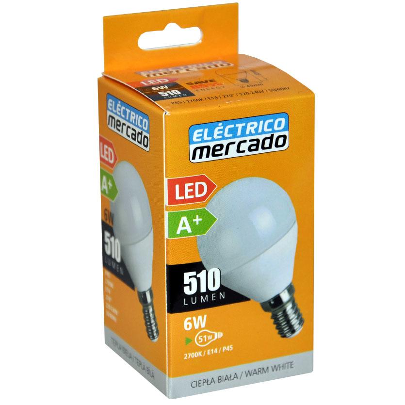 Żarówka LED EM 6W P45 E14 2700K to energooszczędne źródło światła o mocy 6W, emitujące ciepłą białą barwę 2700K, sprzyjającą tworzeniu przytulnej atmosfery. Generuje strumień świetlny 510 lm, a kąt świecenia 270° zapewnia równomierne rozproszenie światła. Dzięki standardowemu gwintowi E14 pasuje do wielu popularnych opraw, takich jak lampki nocne, kinkiety czy małe żyrandole. Żarówka osiąga pełną jasność niemal natychmiast (≤0,2 s) i charakteryzuje się trwałością do 25 000 godzin oraz odpornością na 20 000 cykli włącz/wyłącz. Wskaźnik oddawania barw ≥80 gwarantuje naturalne odwzorowanie kolorów, a brak zawartości rtęci czyni ją bezpieczną i przyjazną środowisku. Klasa efektywności energetycznej F.