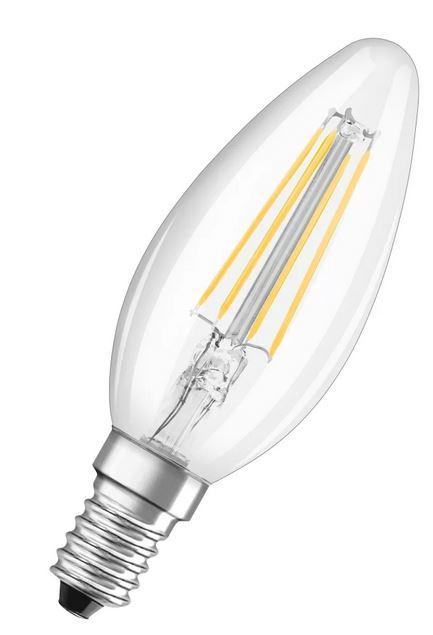 Zestaw dwóch żarówek LED OSRAM FIL z gwintem E14 i kształtem B35 o mocy 4W każda, emitujących neutralne białe światło o temperaturze 4000K. Każda żarówka generuje strumień świetlny 470 lumenów, zapewniając jasne i energooszczędne oświetlenie. Produkt nie posiada funkcji przyciemniania, cechuje się klasą efektywności energetycznej E, idealny do różnych lamp i wnętrz.