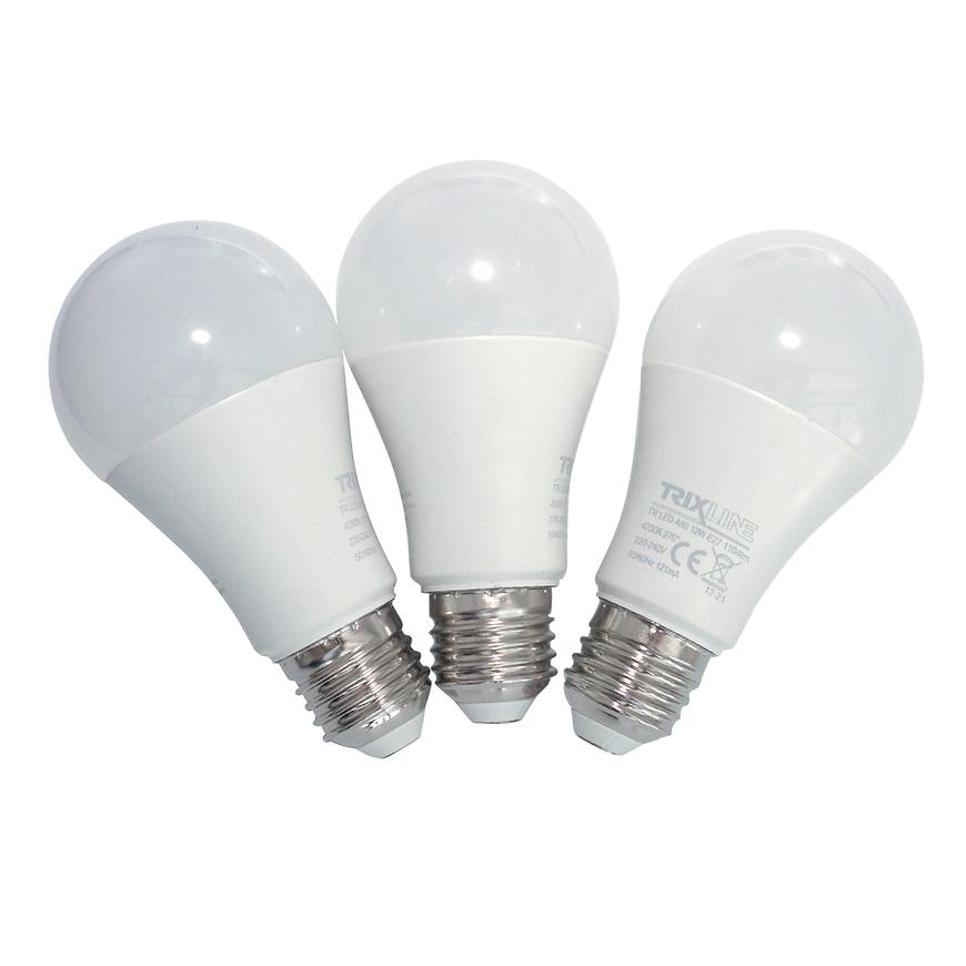 Żarówki BC TR 12 W A60 E27 4200 K to zestaw trzech energooszczędnych źródeł światła LED o neutralnej białej barwie (4200 K) i strumieniu świetlnym 1104 lm każda. Posiadają standardowy gwint E27, moc 12 W oraz klasę efektywności energetycznej F. Nieprzyciemnialne, doskonale sprawdzą się w codziennym oświetleniu pomieszczeń, zapewniając jasne i równomierne światło.