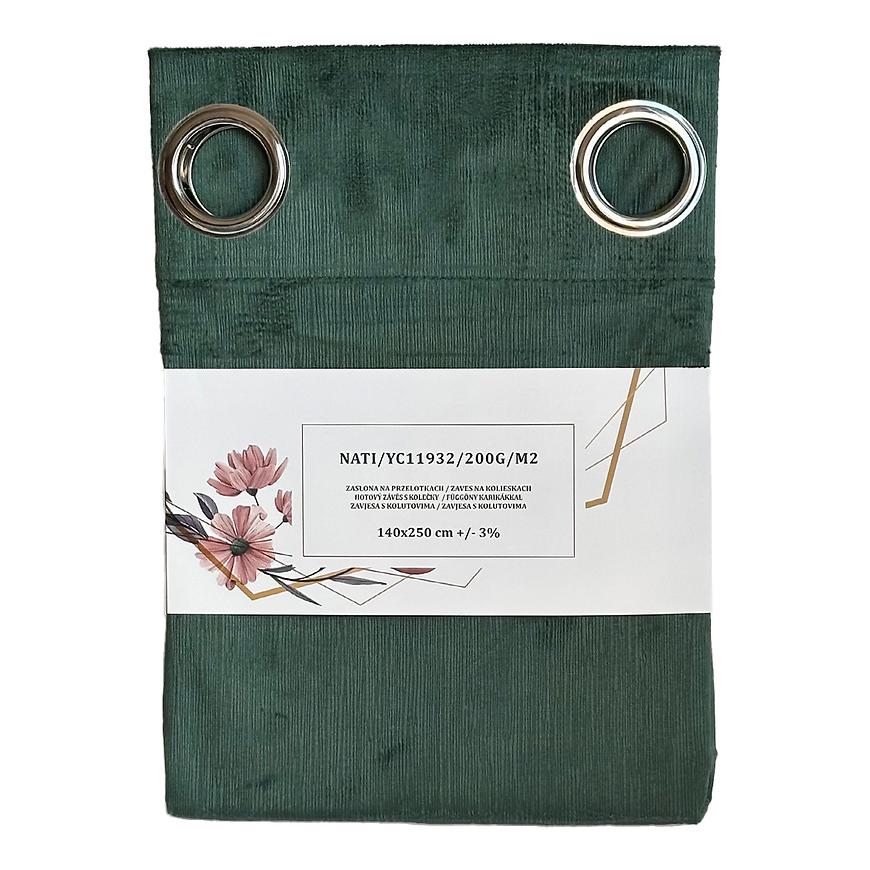 Zasłona na przelotkach w kolorze zielonym o wymiarach 140x250 cm łączy praktyczność z estetyką, tworząc przytulną i elegancką aranżację w salonie lub sypialni. Wykonana w 100% z trwałego poliestru, zapewnia odporność na codzienne użytkowanie, a jednocześnie łatwość utrzymania w czystości – zaleca się pranie w temperaturze 30˚C oraz prasowanie w razie potrzeby.