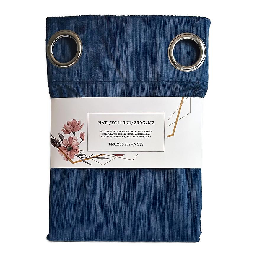 Zasłona na przelotkach w kolorze niebieskim o wymiarach 140x250 cm łączy praktyczność z estetyką, tworząc przytulną i elegancką aranżację w salonie lub sypialni. Wykonana w 100% z trwałego poliestru, zapewnia odporność na codzienne użytkowanie, a jednocześnie łatwość utrzymania w czystości – zaleca się pranie w temperaturze 30˚C oraz prasowanie w razie potrzeby.