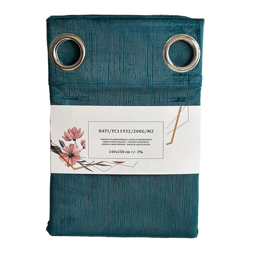 Zasłona na przelotkach w kolorze turkusowym o wymiarach 140x250 cm łączy praktyczność z estetyką, tworząc przytulną i elegancką aranżację w salonie lub sypialni. Wykonana w 100% z trwałego poliestru, zapewnia odporność na codzienne użytkowanie, a jednocześnie łatwość utrzymania w czystości – zaleca się pranie w temperaturze 30˚C oraz prasowanie w razie potrzeby.