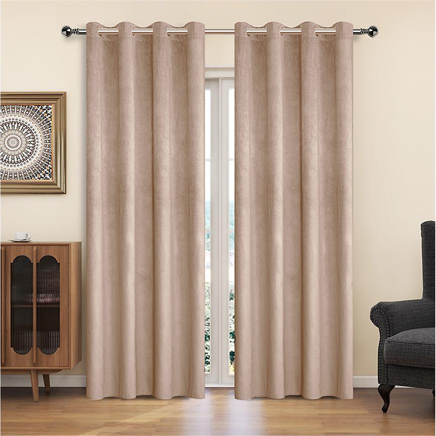 Rozmiar 140x250 cm sprawia, że beżowa zasłona na kółkach dobrze dopasowuje się do standardowych okien oraz wnętrz z wyższymi sufitami. Gładki wzór pozwala na łatwe łączenie jej z innymi dekoracjami, takimi jak firany, poduszki czy narzuty. Możliwość prasowania ułatwia utrzymanie tkaniny w estetycznym stanie, a pranie w temperaturze 30˚C sprzyja zachowaniu koloru i struktury materiału.