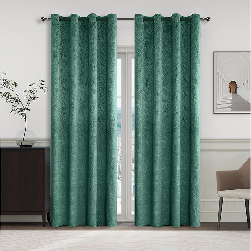 Dzięki dużemu stopniowi zaciemnienia zasłona skutecznie ogranicza dopływ światła dziennego, co zwiększa komfort odpoczynku i sprzyja relaksowi. Zielona zasłona zaciemniająca to idealne rozwiązanie do sypialni i salonu, gdzie istotne jest zapewnienie prywatności oraz kontrola nad ilością wpadającego światła. Tkanina wykonana w 100% z poliestru jest trwała, odporna na zagniecenia i łatwa w utrzymaniu, dzięki czemu zasłona zachowuje estetyczny wygląd na długo.