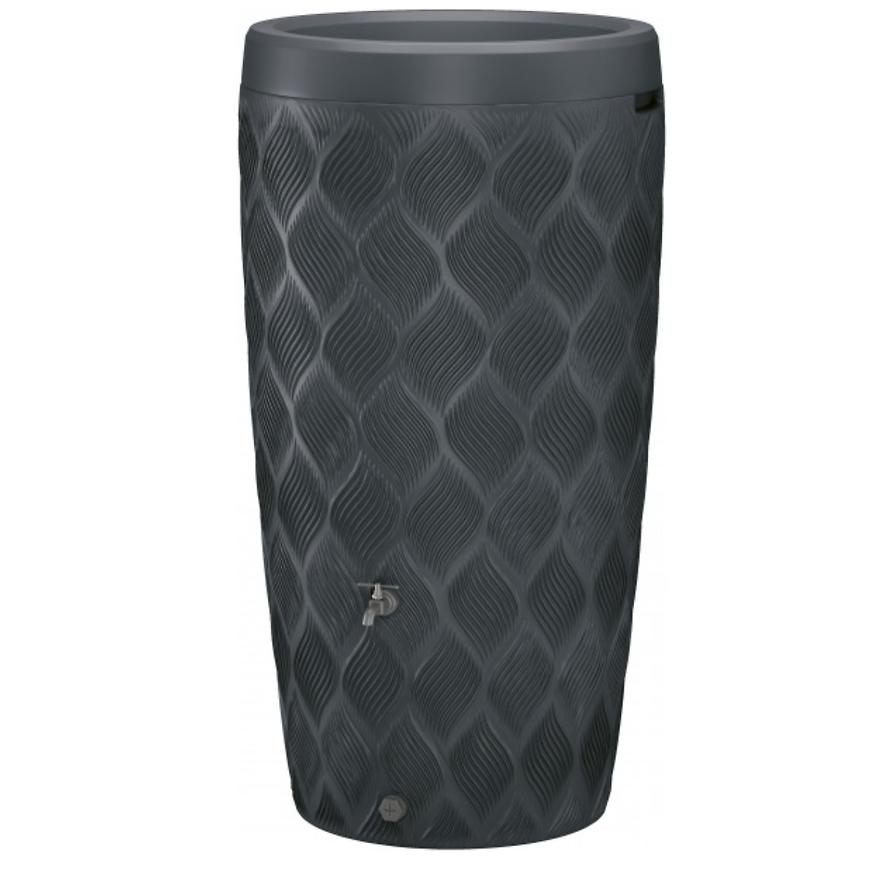 Zbiornik ma kompaktowe wymiary (wysokość 112 cm, szerokość i długość 59,5 cm), dzięki czemu zmieści się nawet w niewielkim ogrodzie, na działce lub przydomowym tarasie. Uniwersalny antracytowy kolor nadaje mu nowoczesny i estetyczny wygląd, który łatwo dopasujesz do otoczenia.