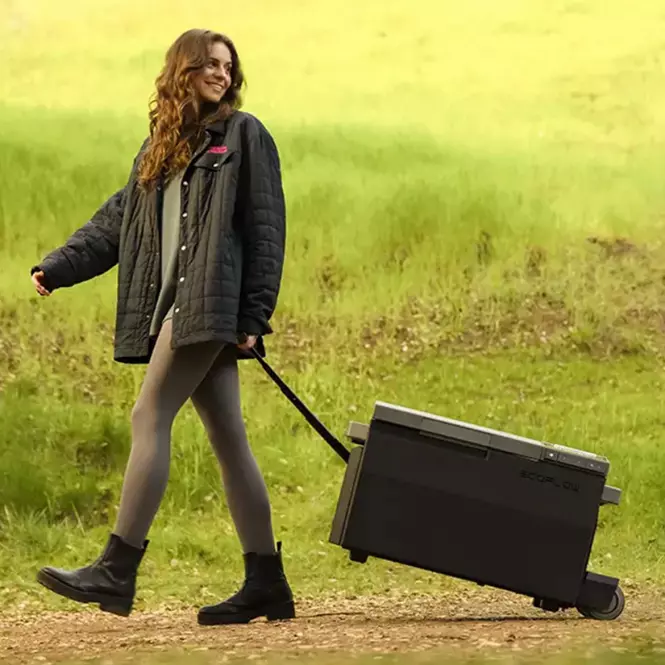 Zdejmowane koła i dźwignia to praktyczny dodatek, który sprawi, że korzystanie z lodówki EcoFlow Glacier stanie się jeszcze łatwiejsze, zwłaszcza w trakcie biwaków, wyjazdów plenerowych czy dłuższych podróży.