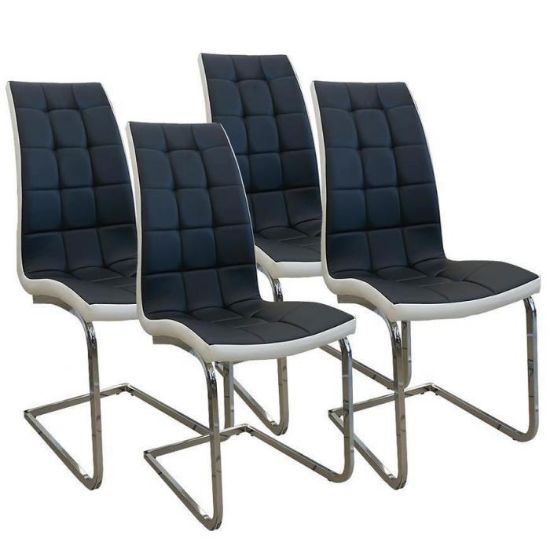 Zestaw 4 krzeseł Modern to nowoczesne krzesło, które idealnie wpasuje się w jadalnie bądź inne, dowolne pomieszczenie. Krzesła wniosą do pomieszczenia elegancję oraz ciekawy wygląd. Dzięki swojemu wybarwieniu wpasują się w większość aranżacji. Krzesła zostały pokryte ekoskórą, która jest przyjemna w dotyku, natomiast wypełnienie to pianka, która zapewni komfort użytkowania. Wysokość do siedziska wynosi 50cm.