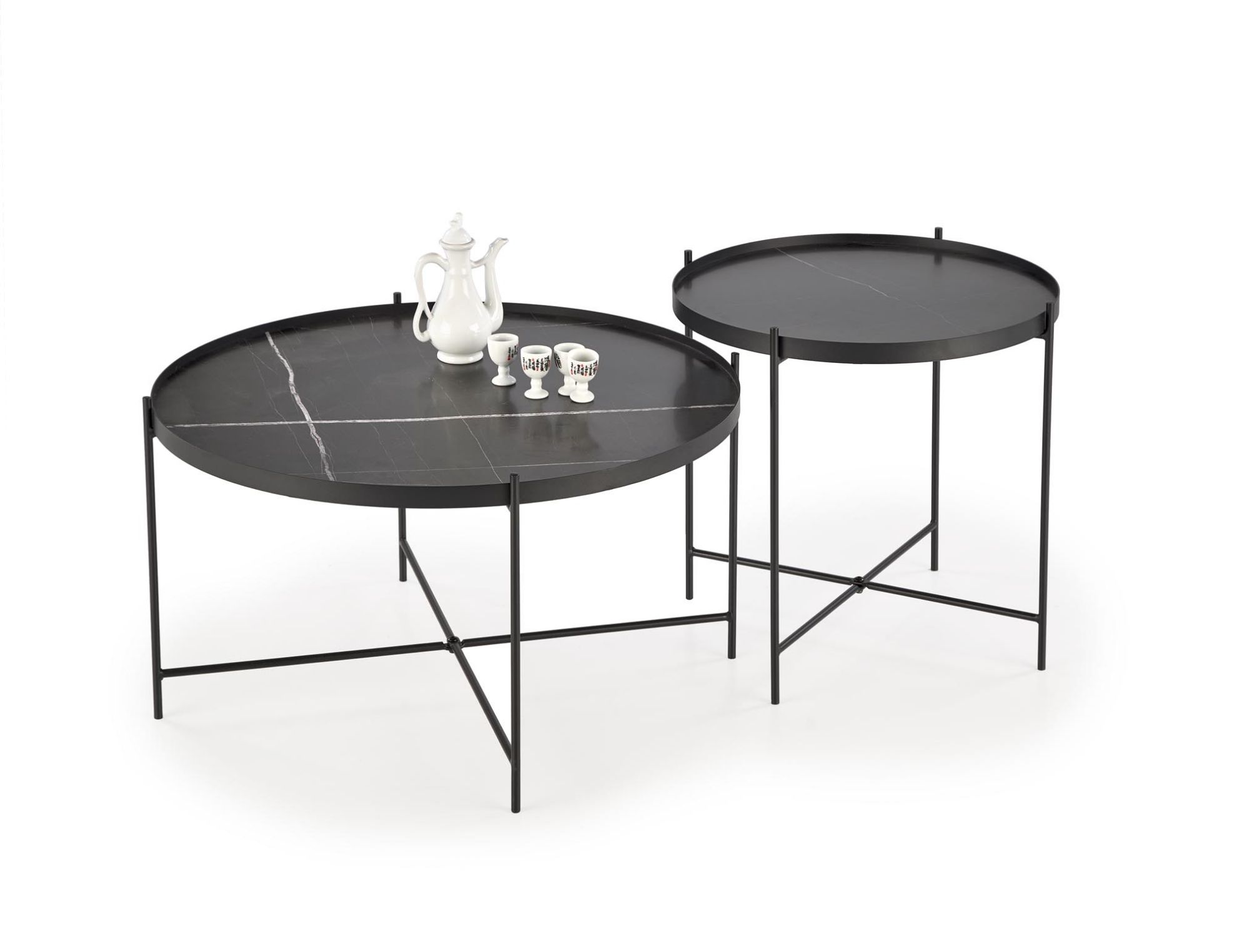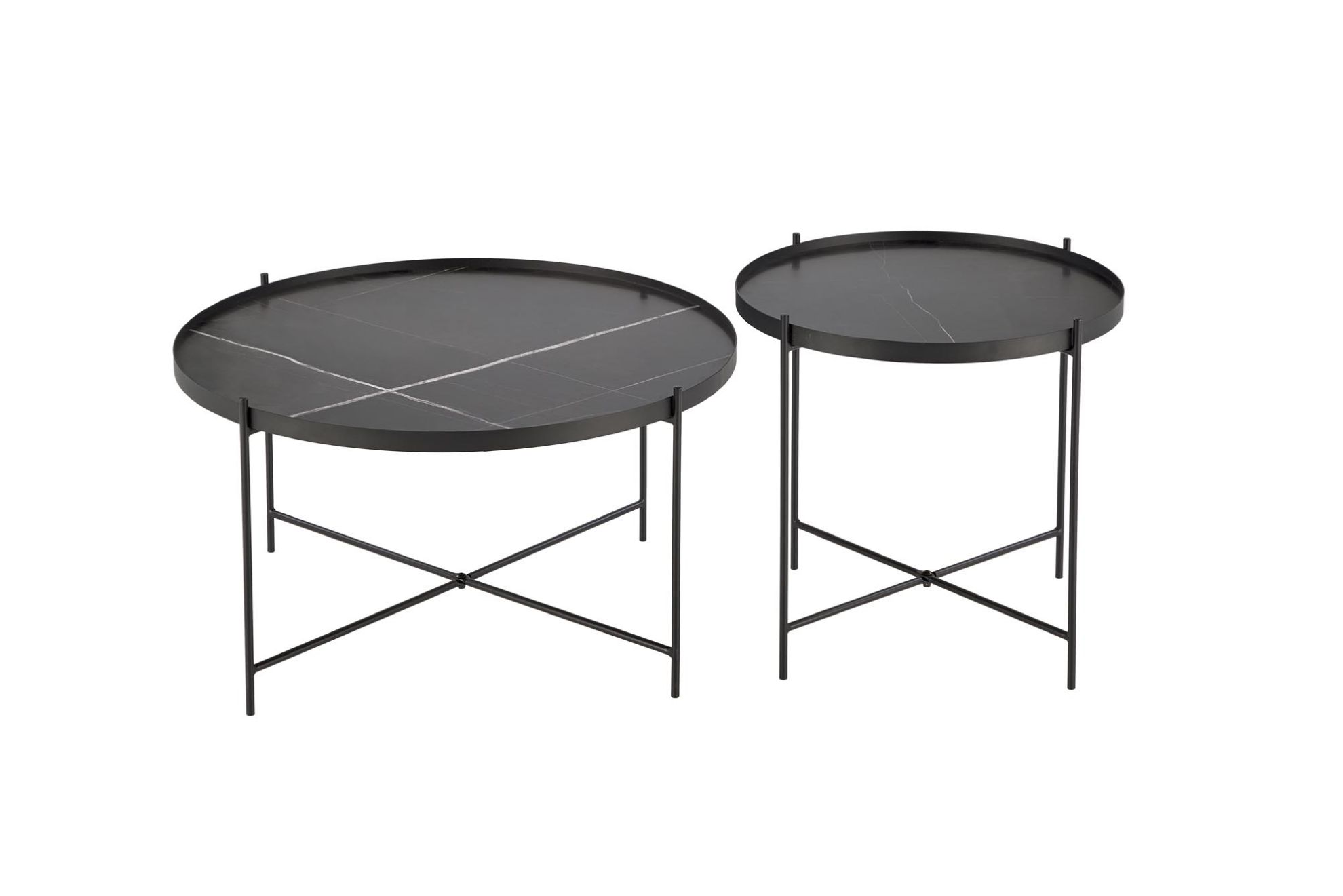 Czarny marmurowy wzór blatu nadaje ławom elegancji i wyjątkowego charakteru, natomiast stal malowana proszkowo w kolorze czarnym stanowi stabilne podparcie, dodając im nowoczesnego wykończenia. Dzięki prostym, geometrycznym kształtom oraz kontrastowi materiałów, zestaw 2 ław Demico stanowi nie tylko praktyczne meble do użytku codziennego, ale również stylowy element dekoracyjny, który podkreśli wyjątkowy charakter każdego pomieszczenia.