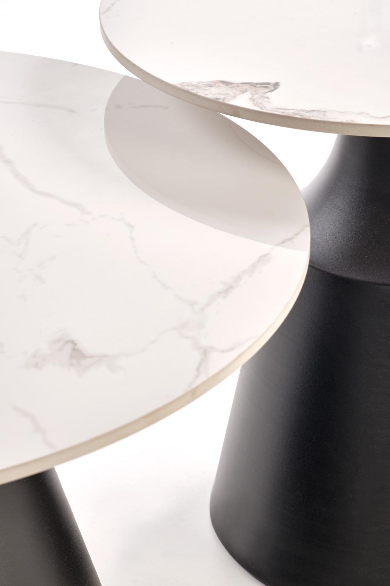 Dzięki różnym rozmiarom ław (fi70/43 cm i fi50/48 cm) zestaw pozwala na łatwe dopasowanie do każdej przestrzeni. Mniejsze ławy można przesuwać pod większą, tworząc funkcjonalne miejsce do odkładania napojów, dekoracji czy książek. Idealny do salonów, przestrzeni wypoczynkowych i nowoczesnych wnętrz mieszkalnych.