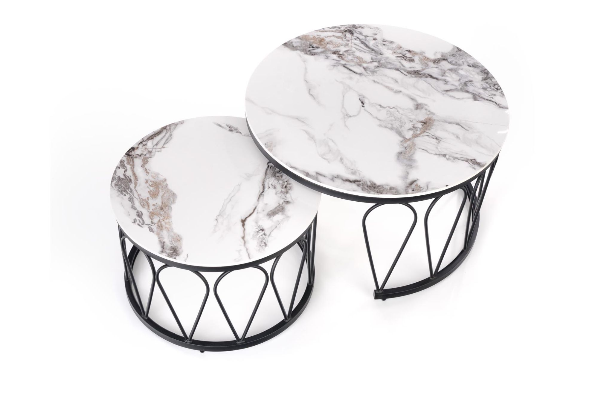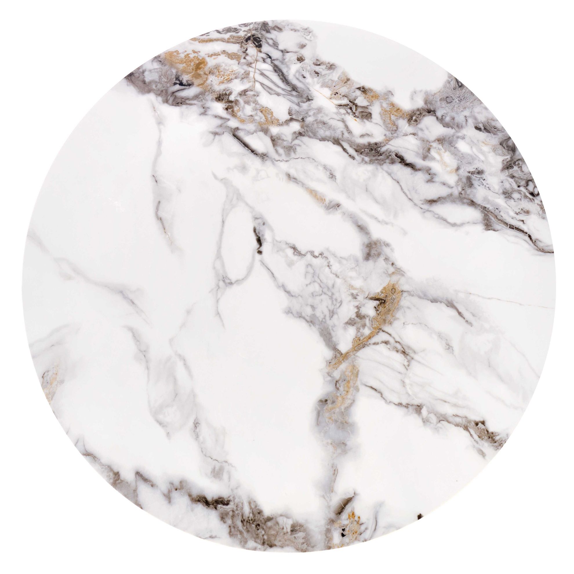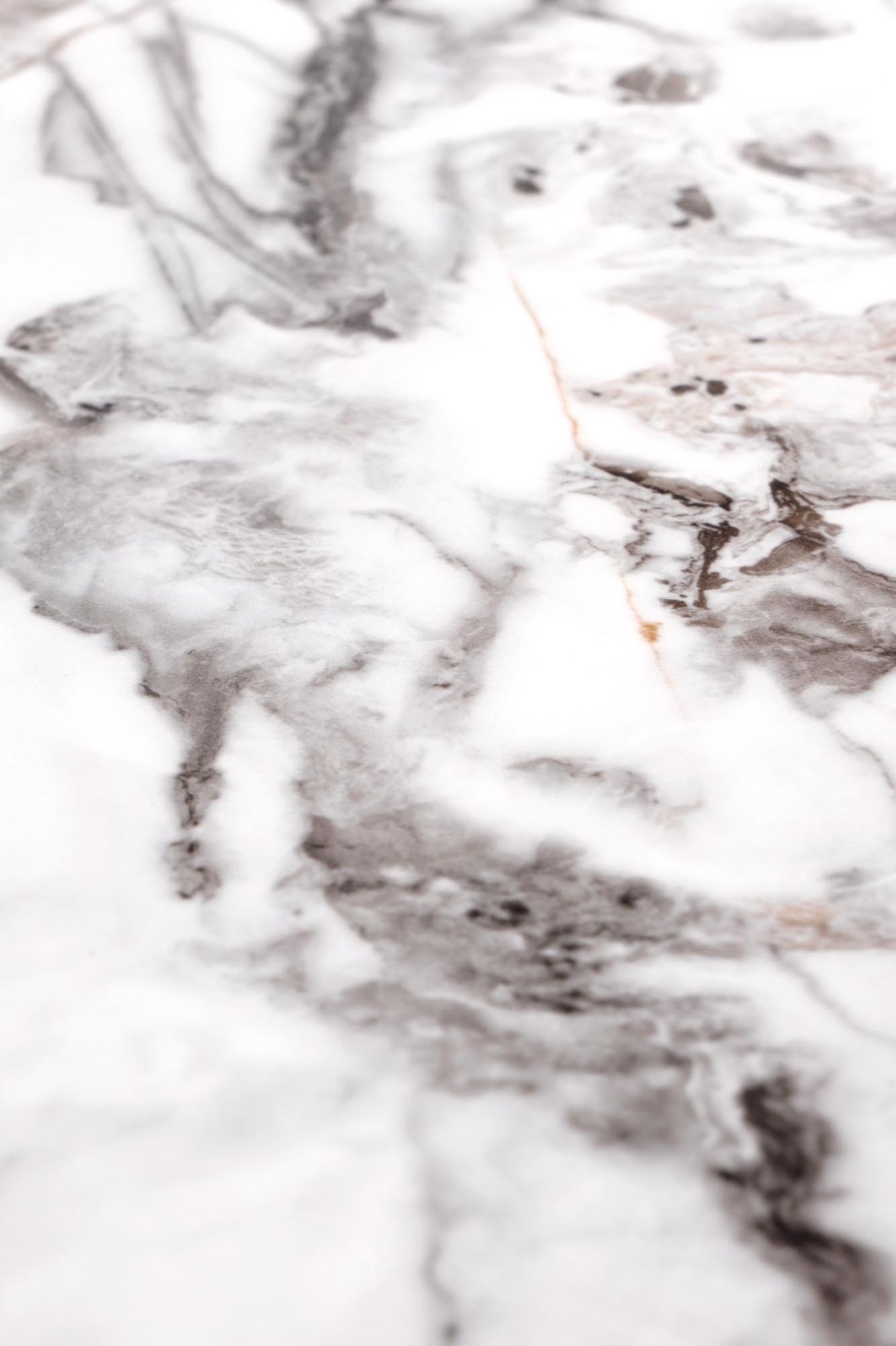 Blaty o wymiarach fi60/40 cm oraz fi80/47 cm, zostały wykonane z trwałego i eleganckiego materiału - spieku. Ich powierzchnia w kolorze białego marmuru nadaje zestawowi subtelnego, ale zarazem efektownego wyglądu, który doskonale komponuje się z różnymi stylami wnętrz.